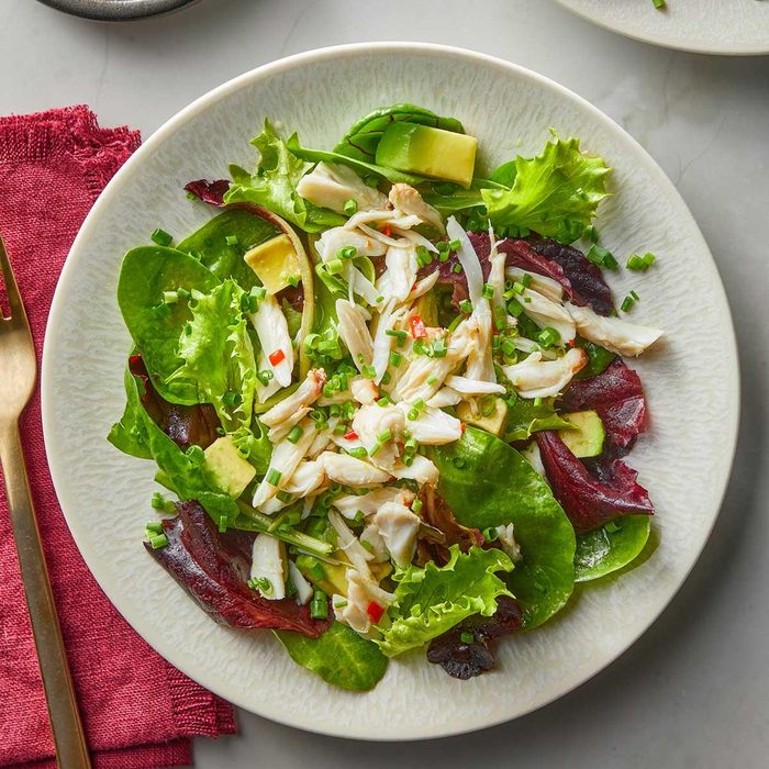 It can be a challenge to find winter holiday recipes that are suited to warmer climates. This luxurious Asian-inspired crab salad fills the bill with its festive colors and flavors. —Laura Wilhelm, West Hollywood, California
