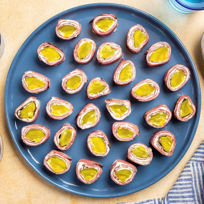 For a book club event, I created pastrami roll-ups with cream cheese and a pickle. Those tasty bites quickly pulled a disappearing act. —Merritt Heinrich, Oswego, Illinois
