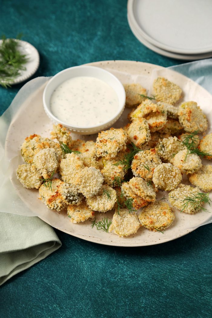 From the Recipe Creator: Like deep-fried pickles? You'll love this unfried version even more. Dill pickle slices are coated with panko bread crumbs and spices, then baked until crispy. Dip them with ranch dressing for an appetizer you won't soon forget.—Nick Iverson, Denver, Colorado