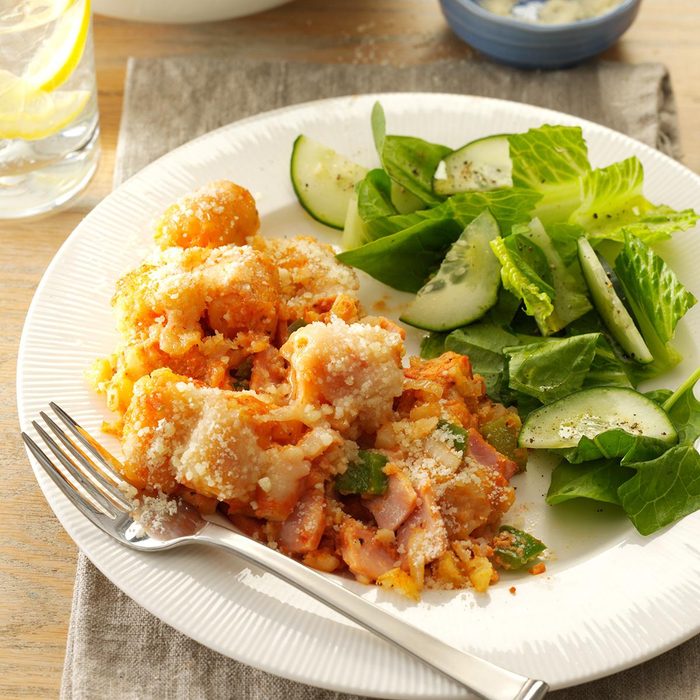 This slow-cooker meal was created to pay homage to my favorite style of pizza—Hawaiian with bacon and pineapple. The Tater Tots in this recipe make it family-friendly. —Lisa Renshaw, Kansas City, Missouri