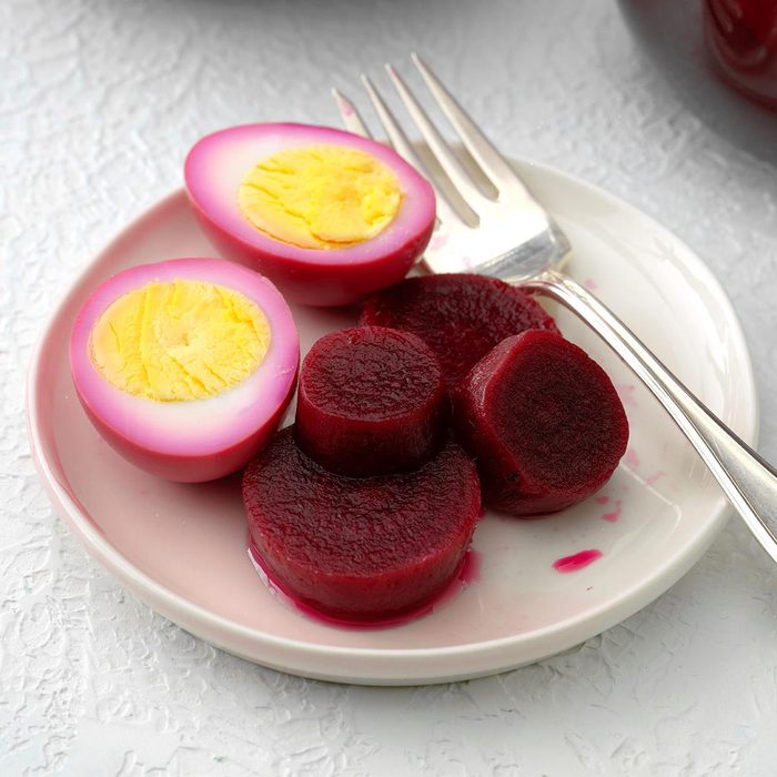 Pickled beets can be enjoyed on their own as a cold side dish, or can be used as a substitute for cooked beets. Pickled beets are also a great addition to a charcuterie board. Pair them with sliced hard-boiled eggs for an easy lunch.
