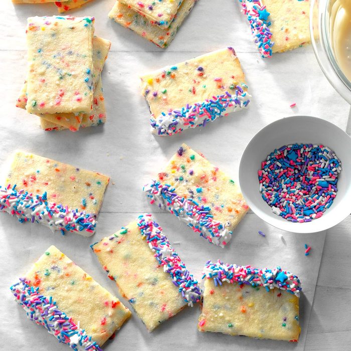 Call the kiddos! Chocolate-covered pretzels have long been a crafty kitchen creation for all ages—and these “horns” from A Bajillian Recipes are no different. Put out iridescent icings along with a variety of toppings (jimmies, nuts, chocolate chips, etc.) and let the little ones go to town.