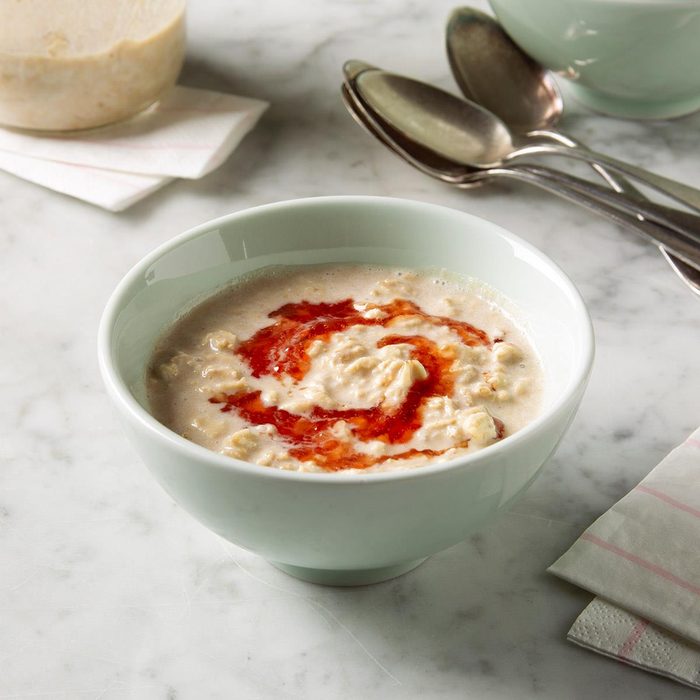 For a truly protein-packed breakfast, try overnight oats with peanut butter. I recommend a creamy, natural peanut butter. Natural peanut butter is drippier than no-stir peanut butter, which means it’s easier to combine with the oats, brown sugar, cinnamon and Greek yogurt.