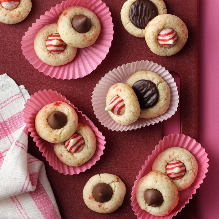 From the Recipe Creator: My group of friends had a weekly "movie night" during winters on Martha's Vineyard, and we'd take turns making a chocolate treat to share. These terrific chocolate thumbprint cookies were an instant success. Once they debuted, I had to make them many more times. —Laura Bryant German, W. Warren, Massachusetts