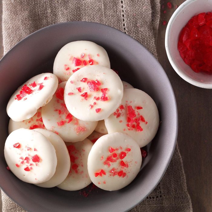 My friends often try to guess the ingredients, but I never tell them how simple they are to make. They taste just like the Girl Scout cookie, and they're perfect for Christmas and bake sales. —Jennifer Setser, Morgantown, Indiana
