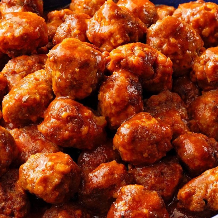 I like to dunk these appetizer meatballs in blue cheese or ranch salad dressing. If I make them for a meal, I often skip the dressing and serve with blue cheese polenta on the side. —Amber Massey, Argyle, Texas