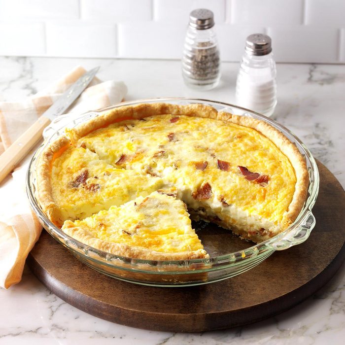 I enjoy preparing hearty country breakfasts for the guests at my bed-and-breakfast. This fluffy breakfast quiche recipe with lots of cheese and bacon is a most satisfying entree.