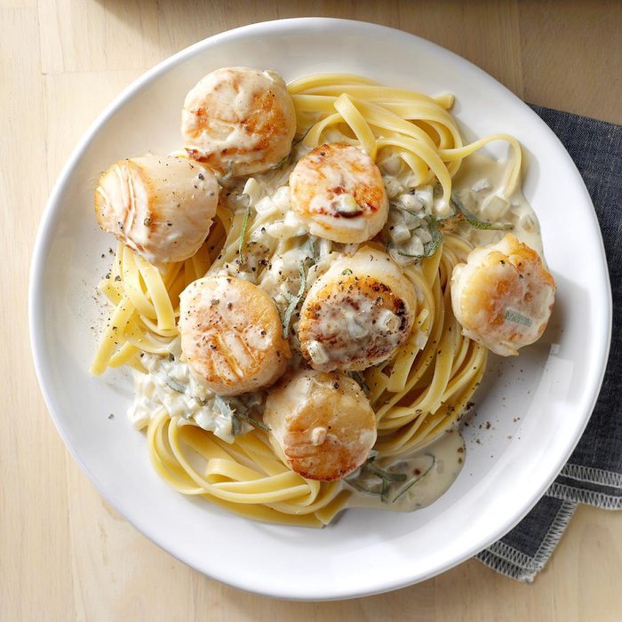 This luscious, lemony pasta and scallop recipe is so easy, it’s become one of our weekly meal mainstays. But it’s also elegant enough to serve to guests. —Donna Thompson, Laramie, Wyoming