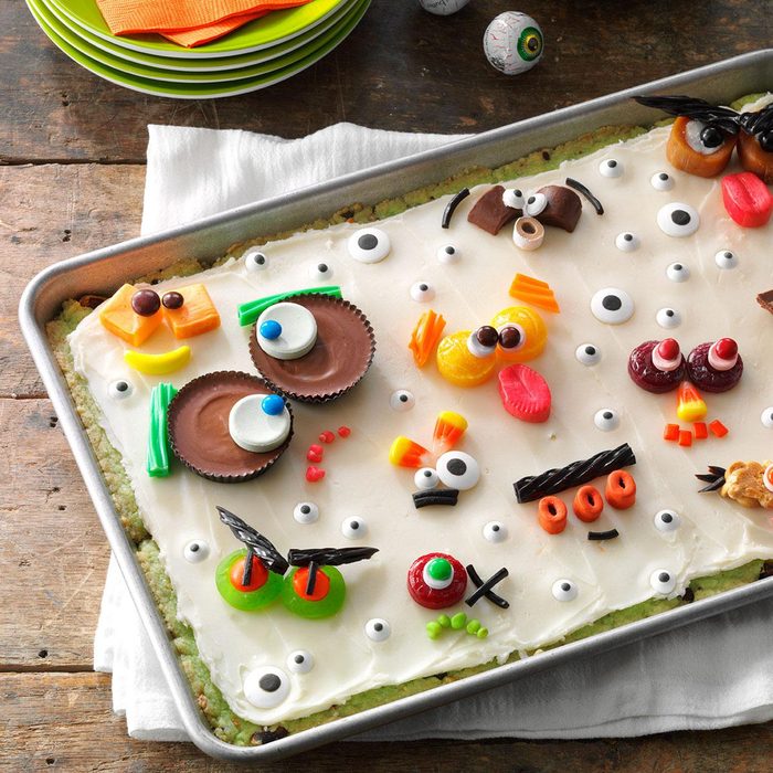 Bar cookies are the best Halloween dessert-so fast and easy. Go as spooky as you dare when decorating this pan for Halloween. Shannon Sheehy, Chesterfield, Virginia