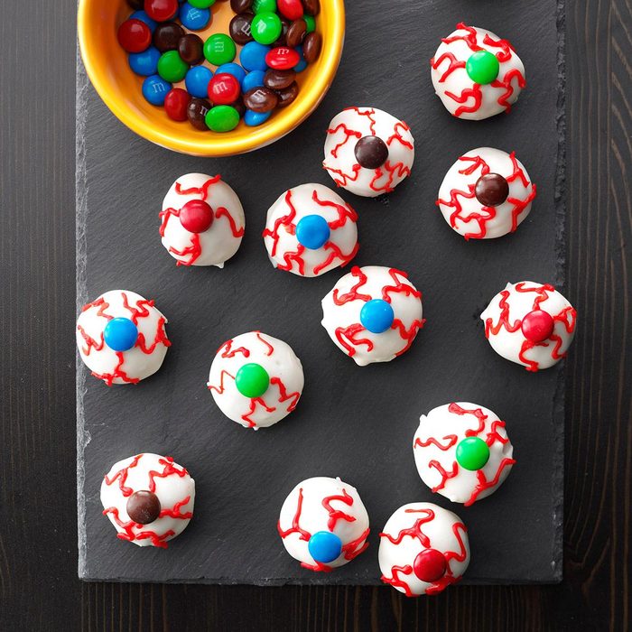 Kids will squeal with delight at the sight of these eyeball treats. But the peanut butter flavor is the best part! —Shannon Blatchley, Ludlow, Massachusetts. Looking for more ideas? Check out our collection of spooky Halloween cakes.