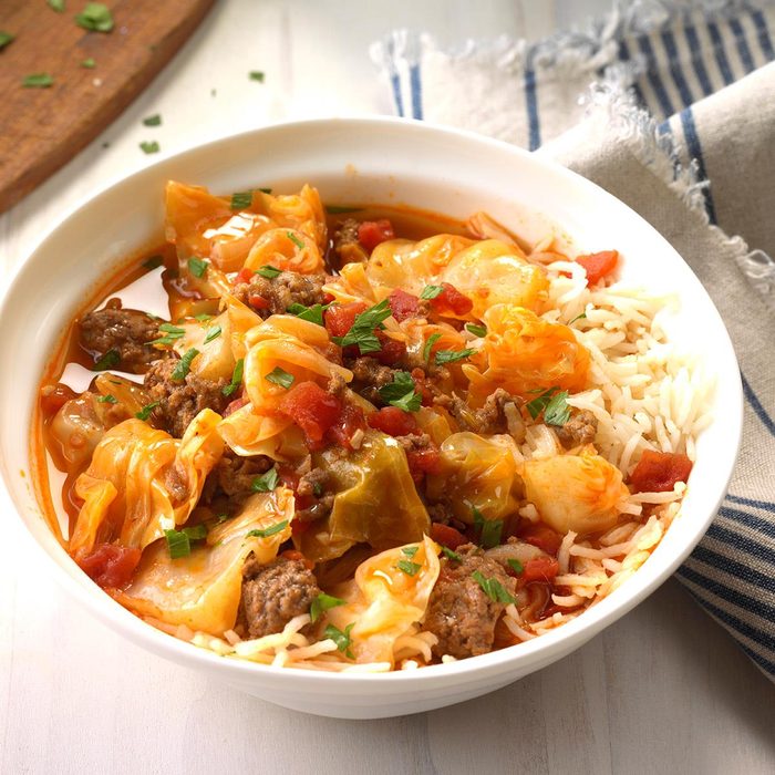 From the Recipe Creator: A head of cabbage seems like it never ends. Here's a delicious way to use it up. My husband is this stew's biggest fan. —Pamela Kennemer, Sand Springs, Oklahoma