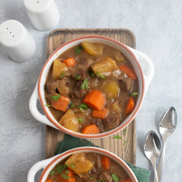 When you’re in the mood for a classic meat-and-potatoes recipe, this is the stew to make. If you can find it, look for lamb shoulder for this recipe. It becomes very tender when braised, taking this stew to the next level.