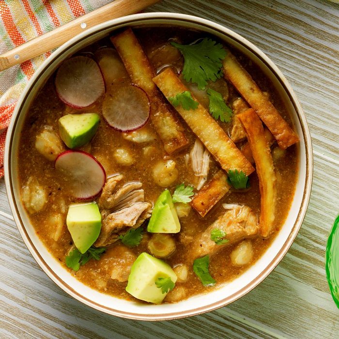 From the Recipe Creator: This aromatic pork stew, also known as pozole, is a southwestern delicacy. I make it in the slow cooker so it can simmer away on its own. The rich, brothy soup is delicious, much like a tamale in a bowl. —Joan Hallford, North Richland Hills, Texas