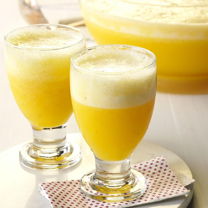 This zesty punch is a refreshing addition to my holiday table. I love its fruity flavor and the bright sunshiny color. You can easily double the recipe if you're expecting a larger group. —Dianne Conway, London, Ontario