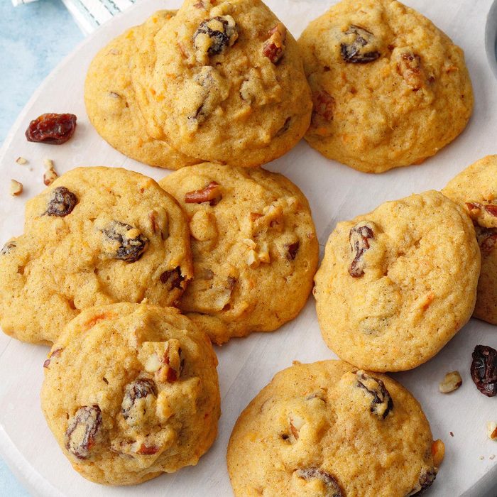 Cozy up to the fire with a plate of satisfyingly sweet cookies that taste like home. They’re filled with sweet potatoes, pecans, raisins and other fall spices. They’re a great accompaniment to a cup of coffee or chai.