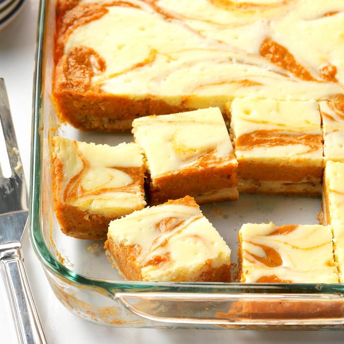 Take a break from pumpkin and stir up one of our reader-favorite sweet potato desserts. These cream cheese-based bars can be made a day in advance and stashed in the fridge. Let them sit at room temperature for 30 minutes before enjoying.
