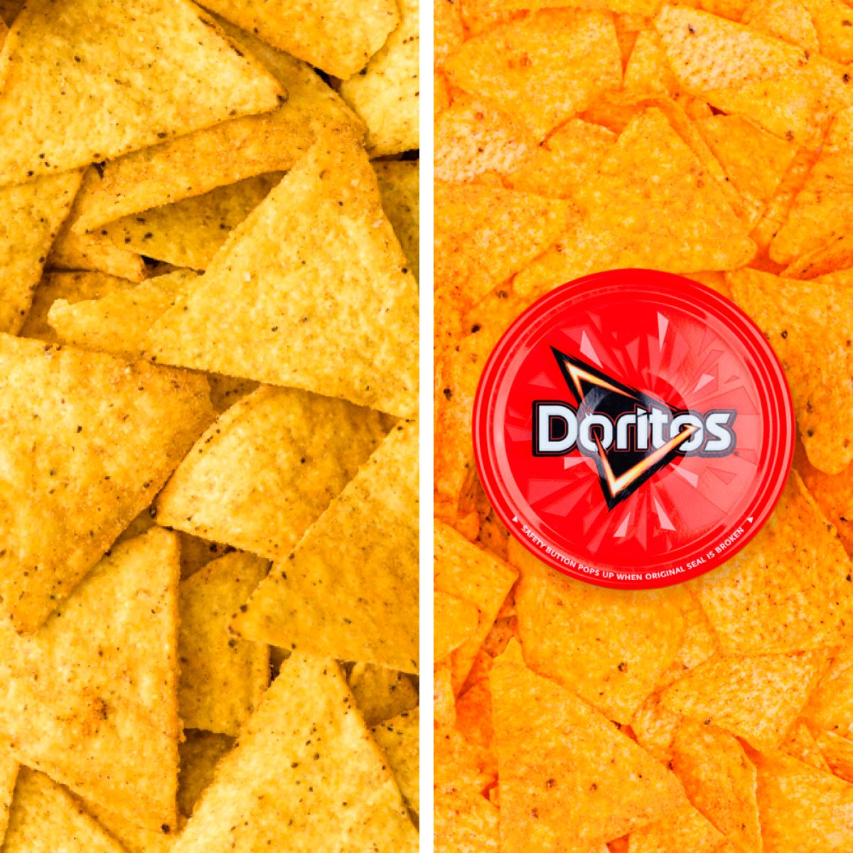 First released in 1974, Nacho Cheese Doritos consist of three main flavors: Romano cheese, garlic powder and salt. The bright, cheesy chip quickly became a favorite of consumers and now accounts for half of Doritos’ sales.