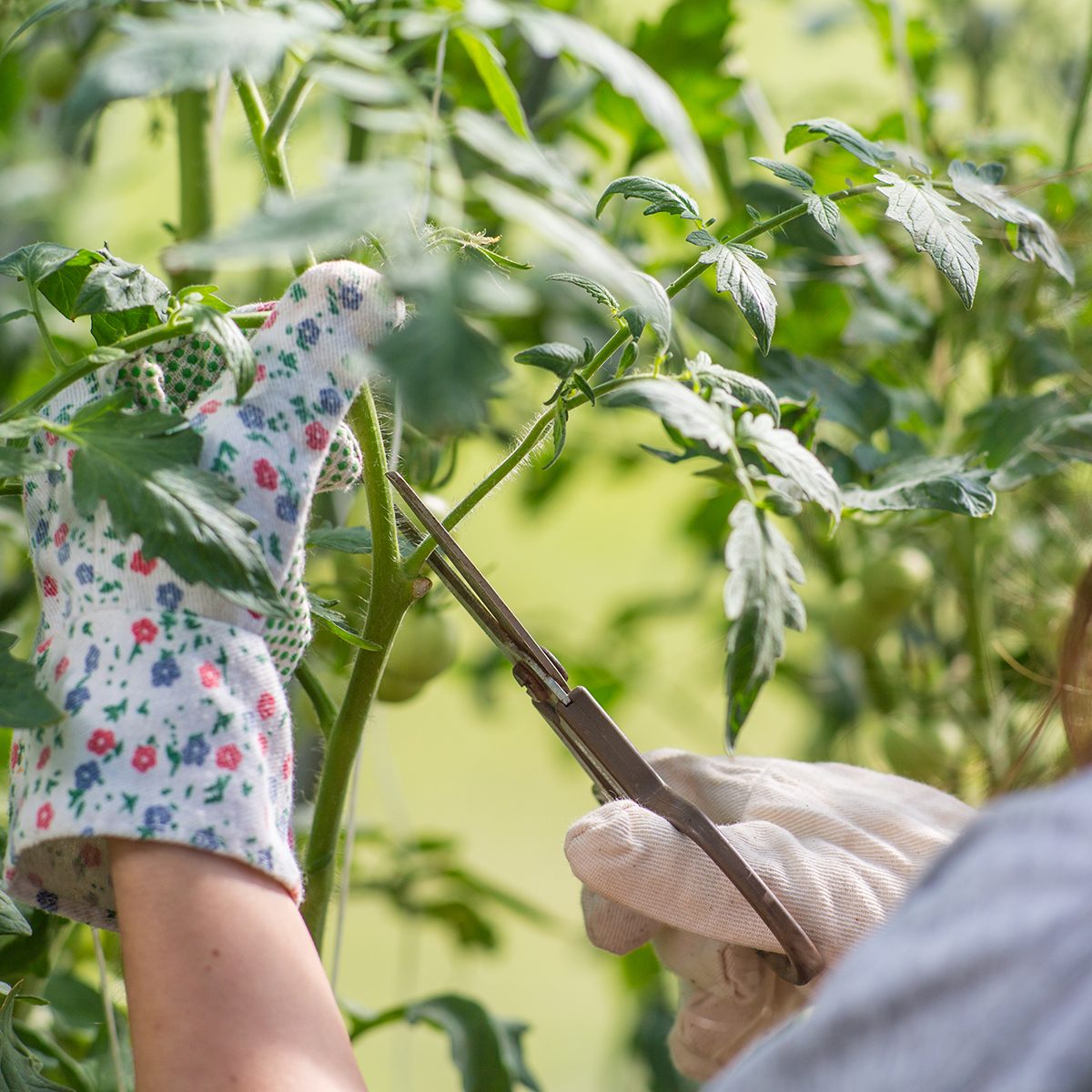 No matter what, tomatoes tend to get a little leggy—and that’s fine! But don’t forget to prune the plants strategically. Early in the season, trim away small stems (aka suckers) along the base of the plant. This will help focus the plant’s energy into creating a strong stem.