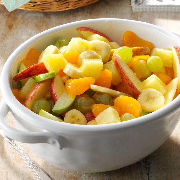 This appealing fruit salad is a lovely addition to breakfast, lunch or even supper. Light and refreshing, it’s perfect alongside egg bakes, sausages and other hearty staples you find on breakfast buffets. —Millie Vickery, Lena, Illinois