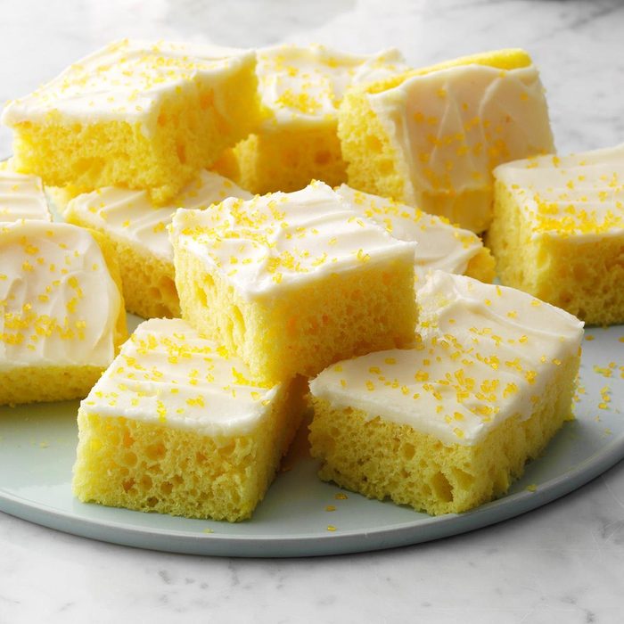 Everyone raves over this lovely lemon cake which gets its flavor from lemon extract and plenty of citrus zest. It’s divine with fresh raspberries and a scoop of vanilla ice cream. —Joan Hallford, North Richland Hills, Texas