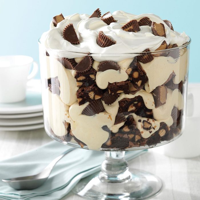 This rich, tempting, peanut butter brownie trifle feeds a crowd and features the ever-popular combination of chocolate and peanut butter. Try this dessert for your next get-together. —Nancy Foust, Stoneboro, Pennsylvania