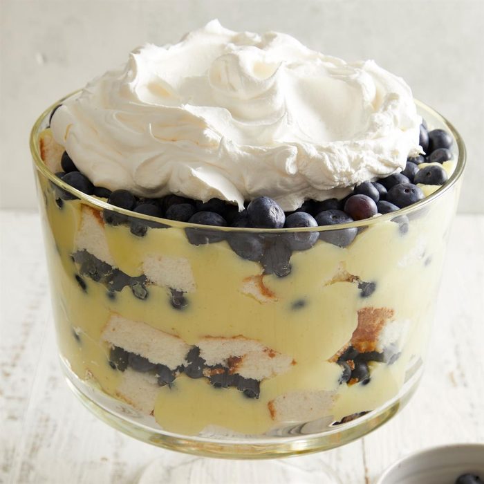 A refreshing lemon filling and fresh blueberries give this sunny dessert sensation plenty of color. Don't worry about heating up the oven—this trifle doesn't require baking. —Ellen Peden, Houston, Texas