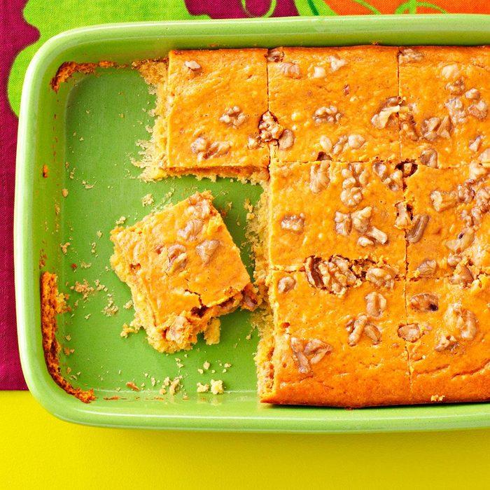 From the Recipe Creator: My mother-in-law handed this pumpkin bar recipe down as a surefire way to keep my husband happy during the holidays. It's his favorite childhood dessert. —Melissa Conchieri, Northport, New York