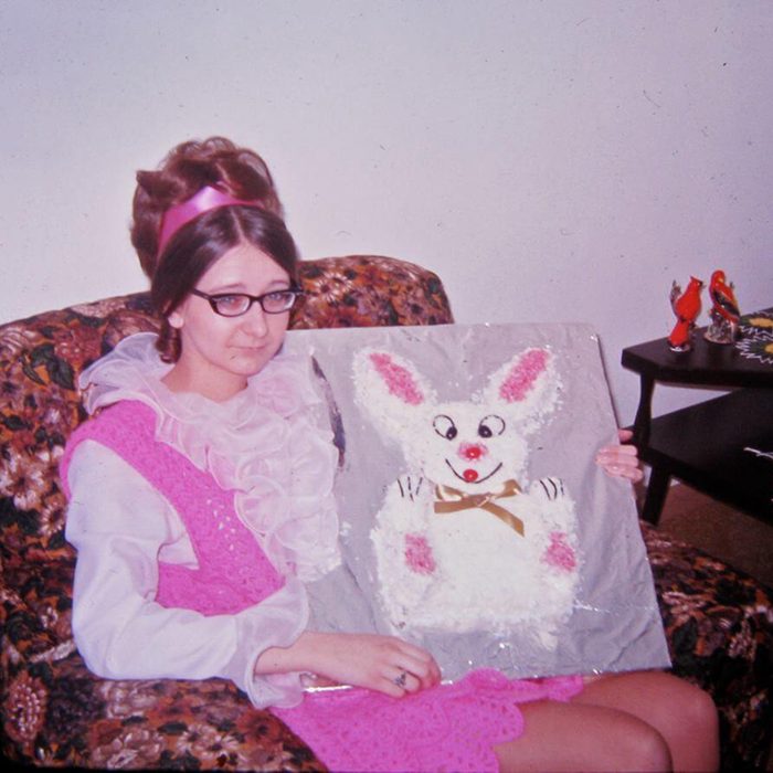 Community Cook Darlene Brendan says, “Do you think I had enough ruffles?” While we’re sure she’s happy to see those styles left in the past, we’re happy that bunny cakes are an enduring trend.