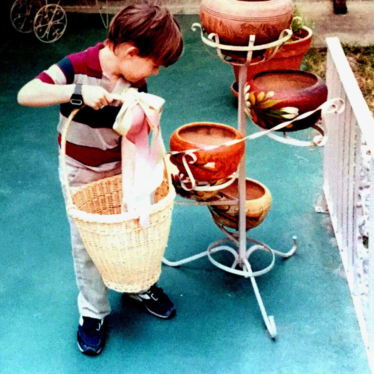 On Easter morning, what little girl isn’t in a floral dress and hat? We love this ’90s version perfect with those adorable pink shoes.