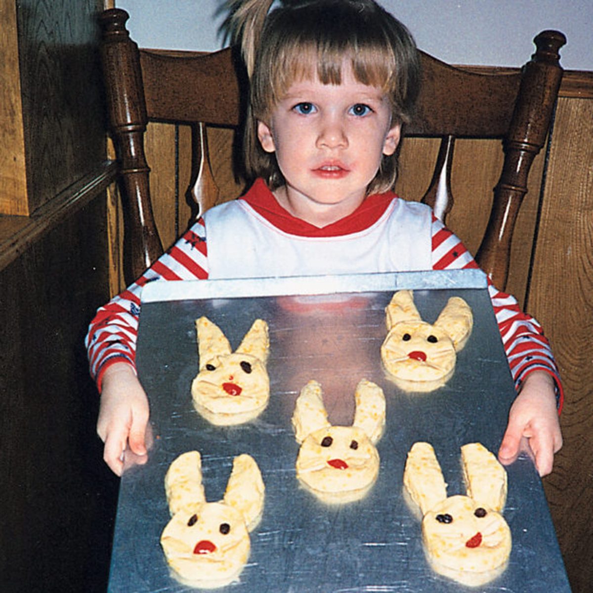 Community Cook Darlene Brendan says, “Do you think I had enough ruffles?” While we’re sure she’s happy to see those styles left in the past, we’re happy that bunny cakes are an enduring trend.