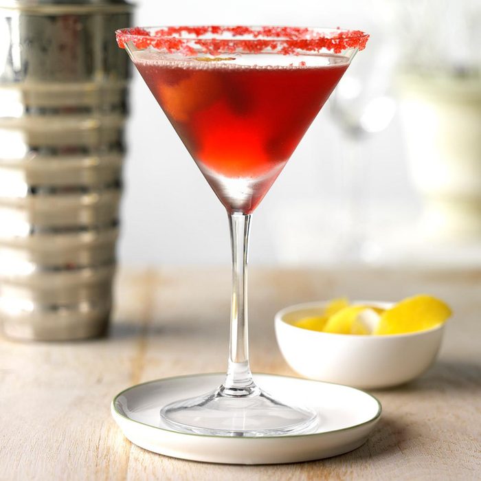 Every soiree needs a signature drink. Sugar dresses up this simple cosmo that lets you enjoy a cozy evening with friends and still shake things up. —Taste of Home Test Kitchen
