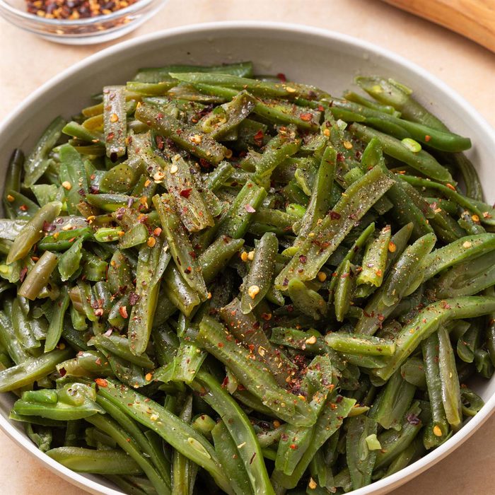 Green beans can be grassy-tasting or mildly bitter, so to make them taste better, start by cooking green beans perfectly with whatever method you choose and seasoning them well to bring out their natural sweetness. Green beans shine with simple seasonings, so a pinch of flaky salt, a splash of soy sauce or a quick toss with browned butter goes a long way. Although you should not eat raw green beans, overcooking them will flatten their flavor, so aim for crisp-tender.