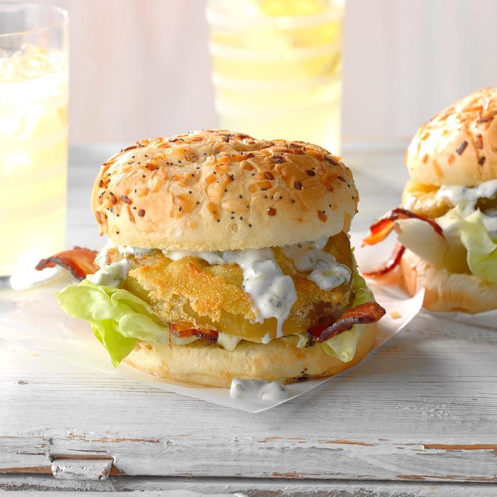 I absolutely love tomatoes, any kind, any size. Being from the South, that includes fried green tomatoes. I created a special summer sandwich to show them off. —Hillian Holmgren, Del Rio, Texas