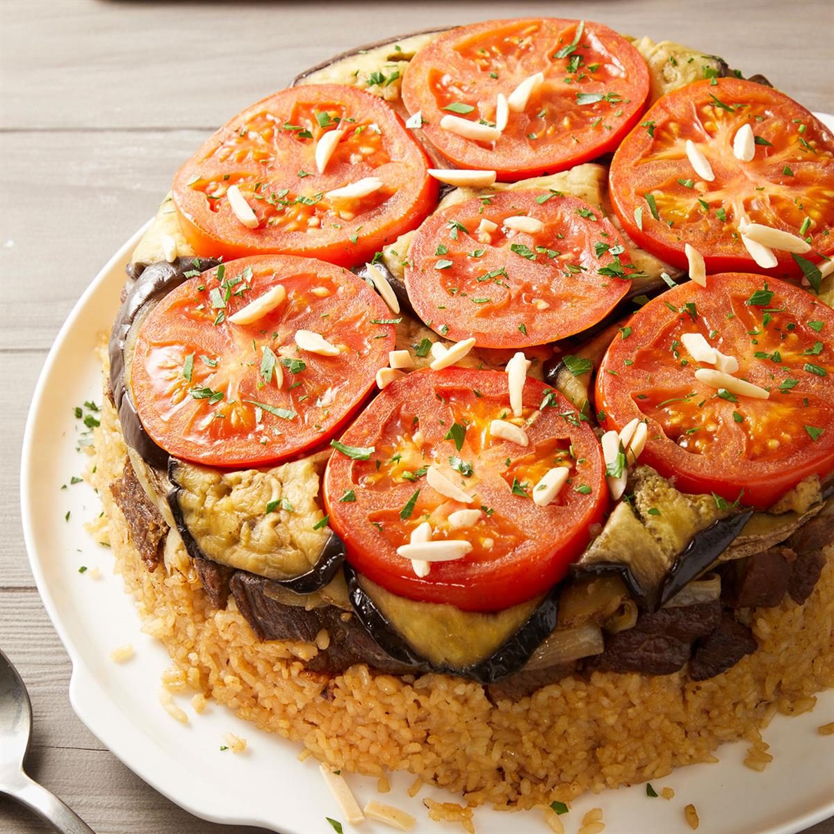 Maqluba is a traditional Middle Eastern dish with layers of vegetables, warmly spiced meat and rice. When flipped upside down,...