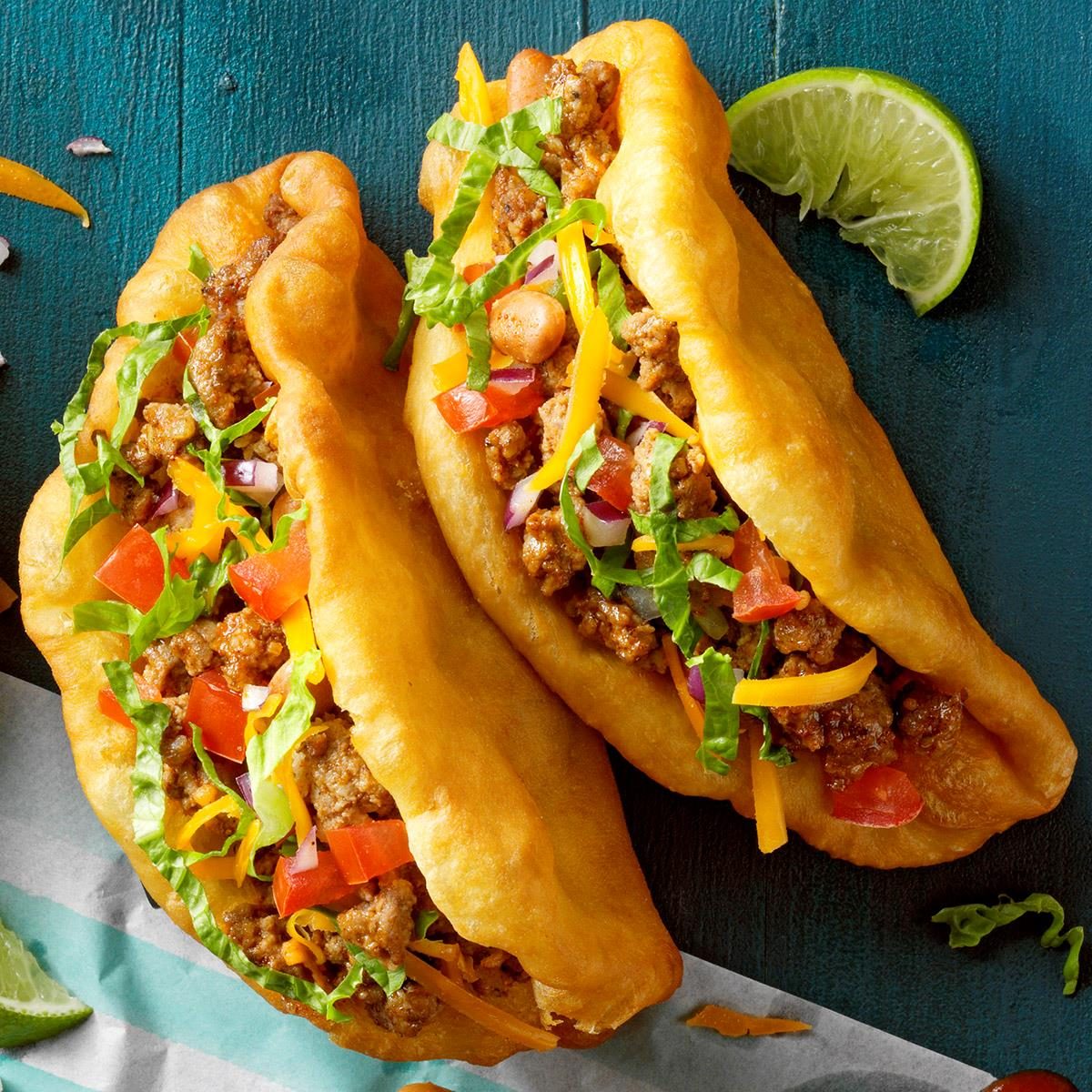 My niece gave me this hearty recipe. Frozen bread dough makes the fry bread tacos easy to prep. —Robin Wells,...