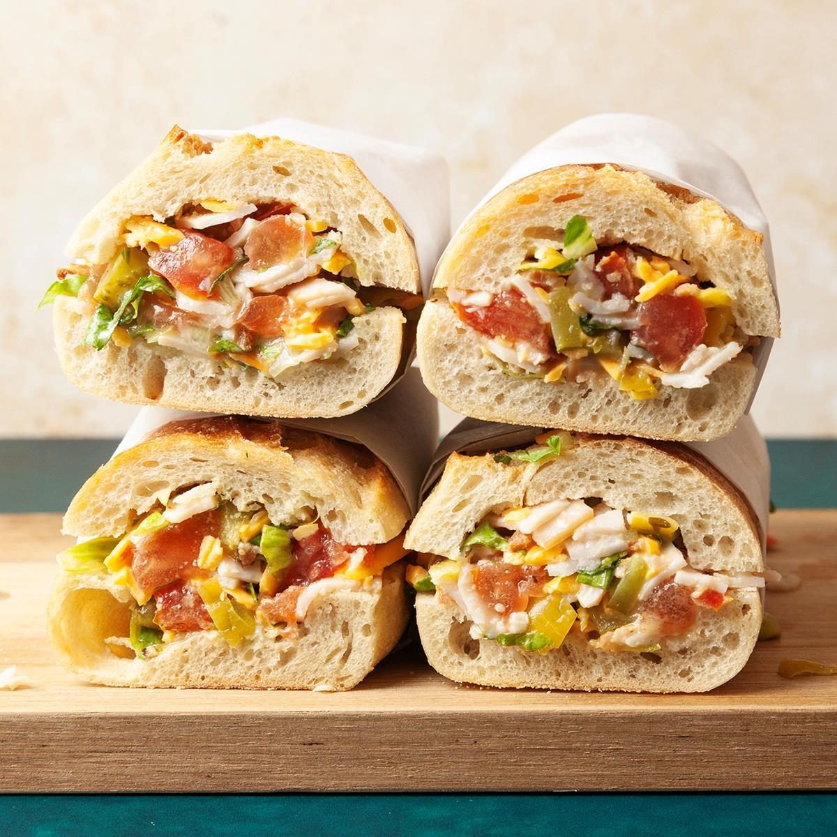 This stuffed sub salad sandwich recipe takes a savory mix of turkey, veggies, smoky bacon and a peppery ranch dressing,...