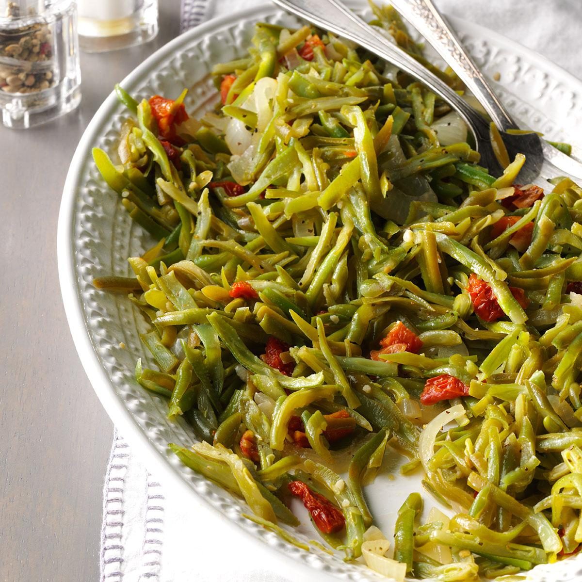 These green beans travel so well because they can either be served at room temperature or reheated at the party....