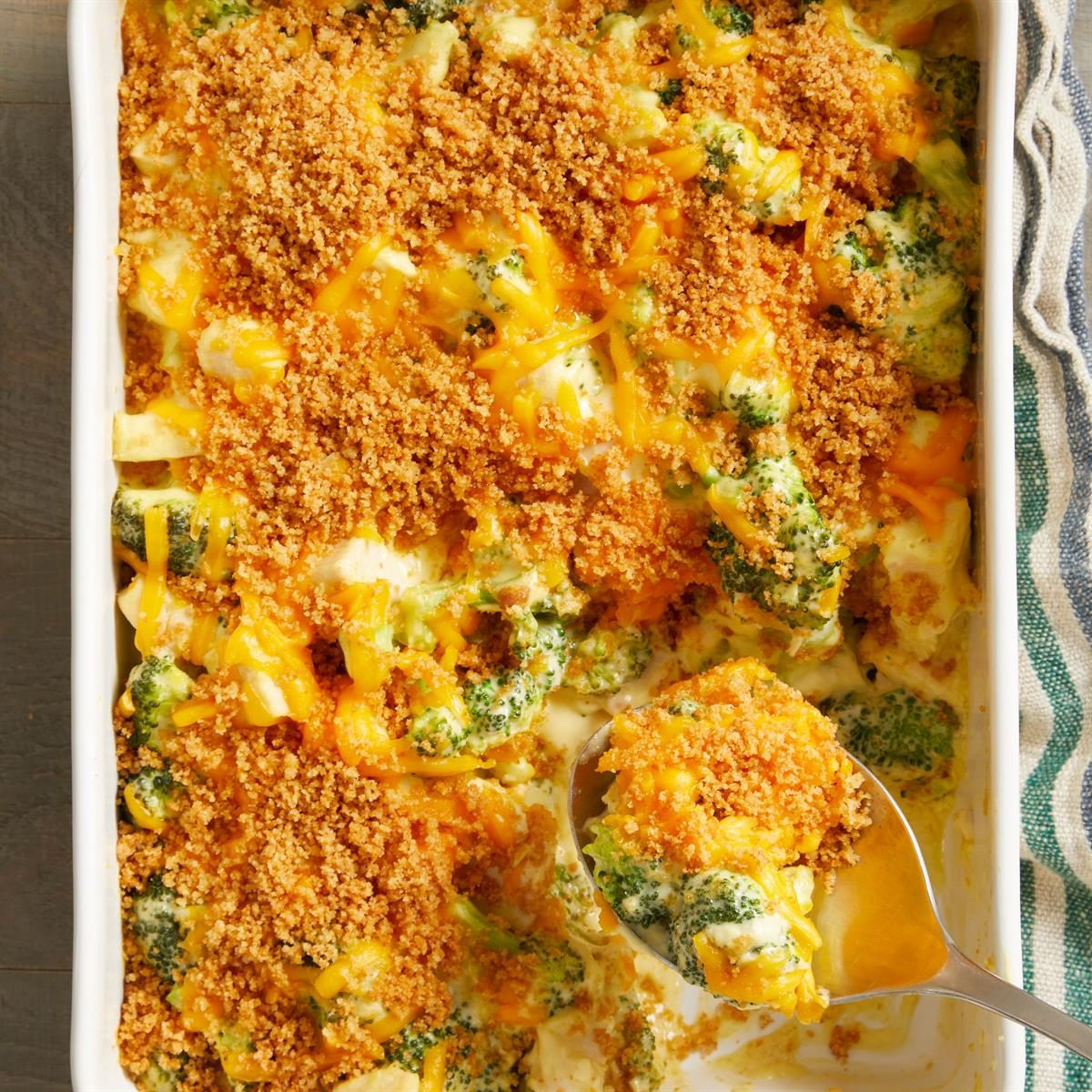 Creamy, cheesy sauce, tender chicken and frozen broccoli cook to bubbling perfection under a cap of crunchy bread crumbs in...