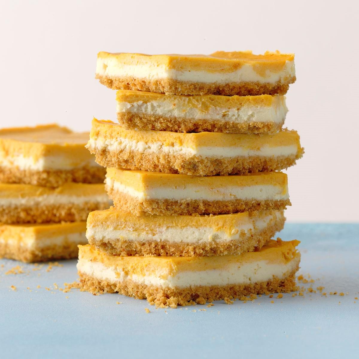 No-bake pumpkin spice cheesecake bars are creamy, dreamy and basically autumn in dessert form. It’s time to get cozy with this fall sweet treat! —Alex Bala, Longmont, Colorado