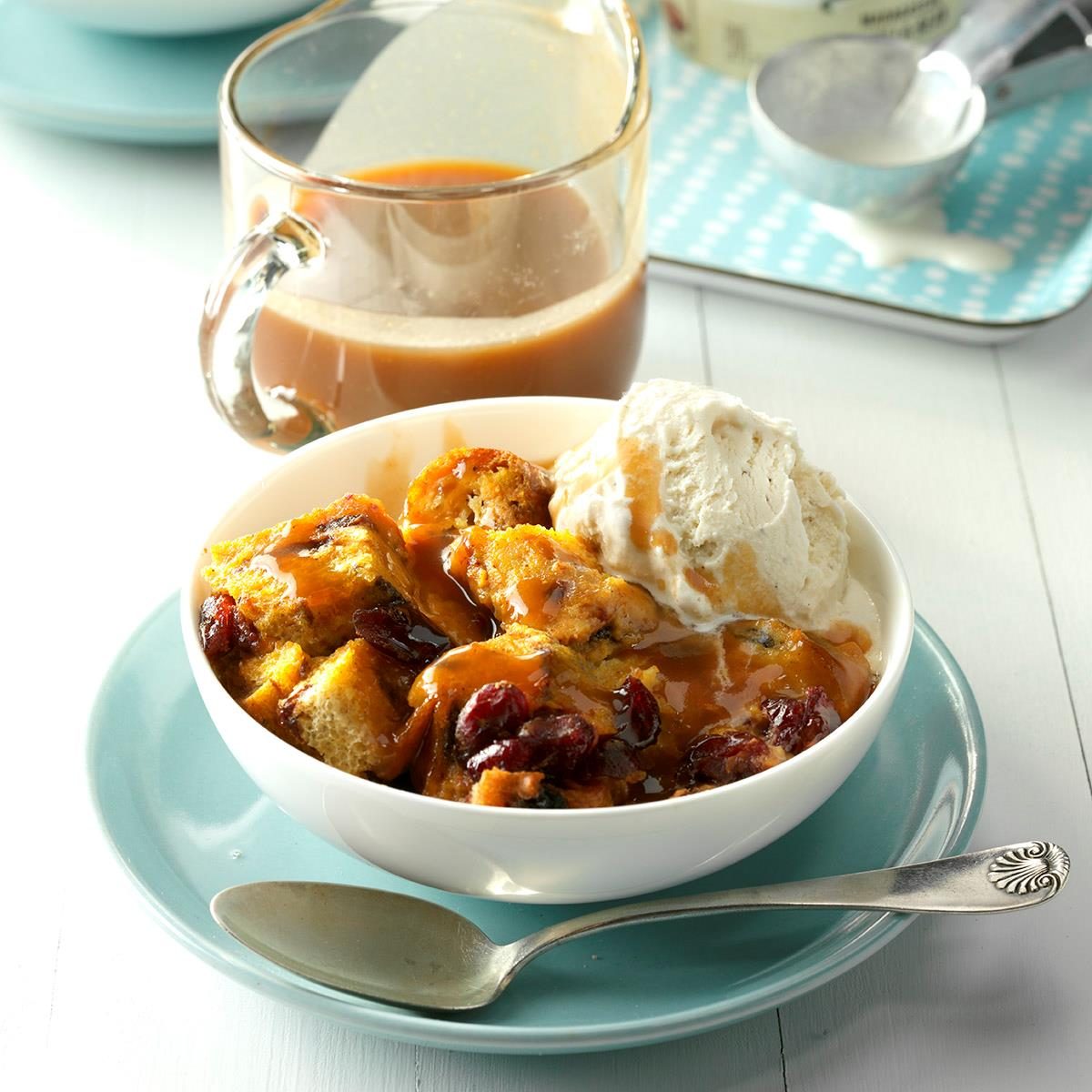 Savor your favorite fall flavors with this scrumptious bread pudding, served warm with a sweet vanilla sauce. Yum! —Judith Bucciarelli,...