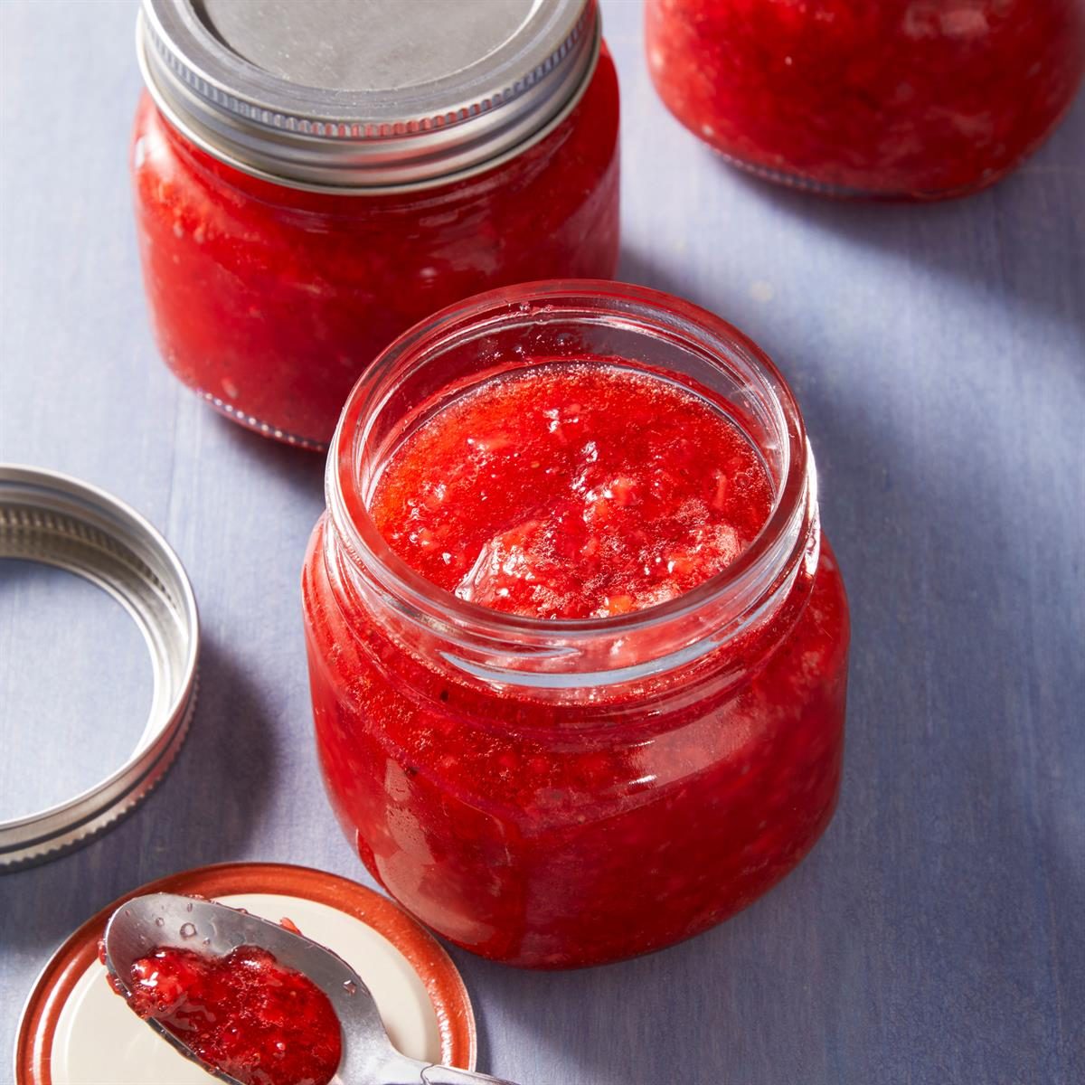Strawberry freezer jam is a delicious homemade jam for all your toast, biscuit and dessert needs. No fussing with a...