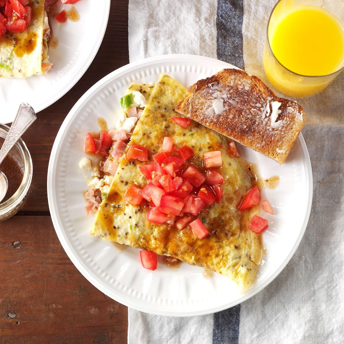 Just a few ingredients jazz up a basic omelet and make it delish! —Taste of Home Test Kitchen