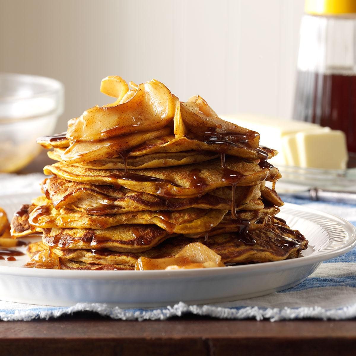 Pumpkin Pancakes with Cinnamon-Apple Topping