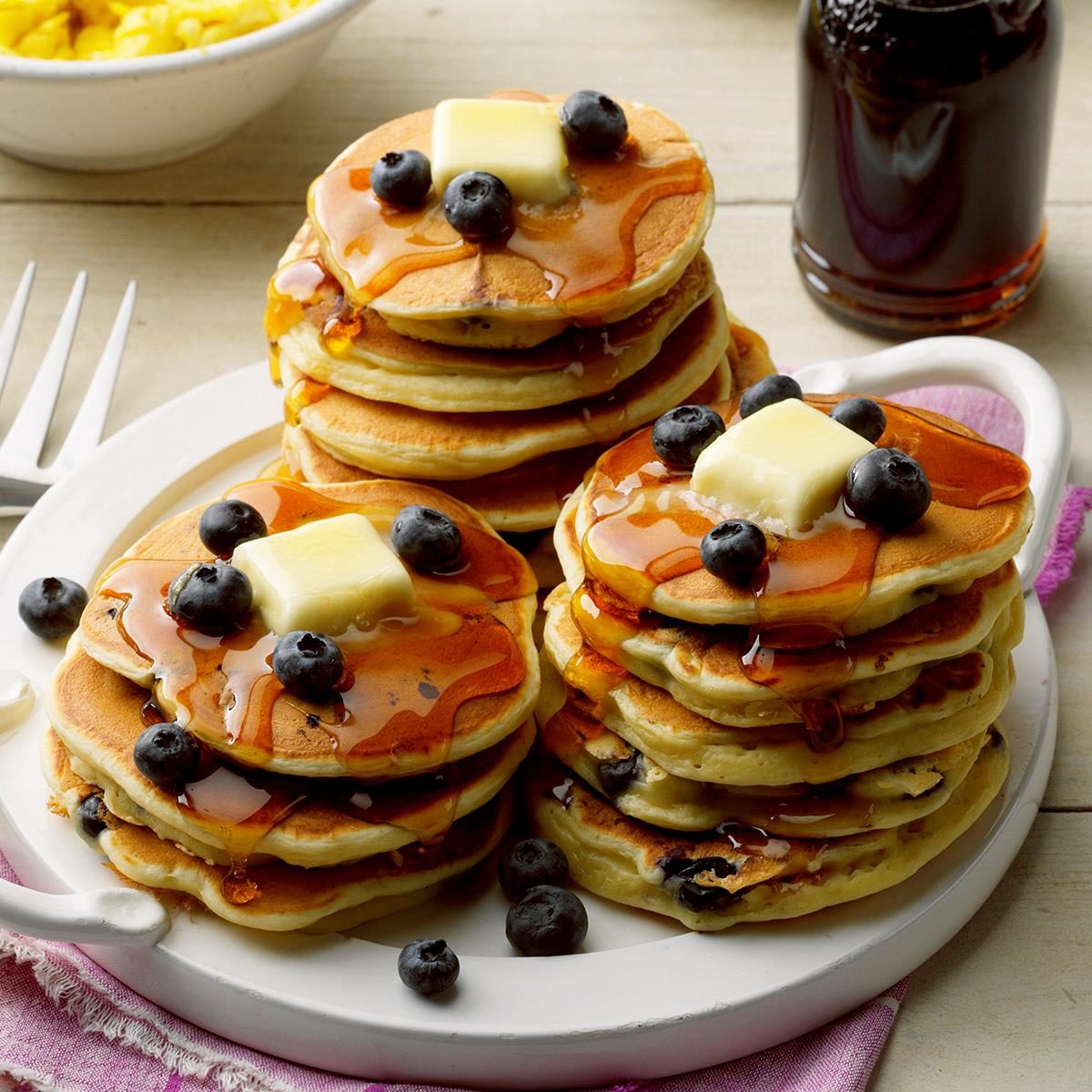 Here's the classic blueberry pancake. They are light as a feather and bursting with flavor! —Ann Moran, Islesford, Maine