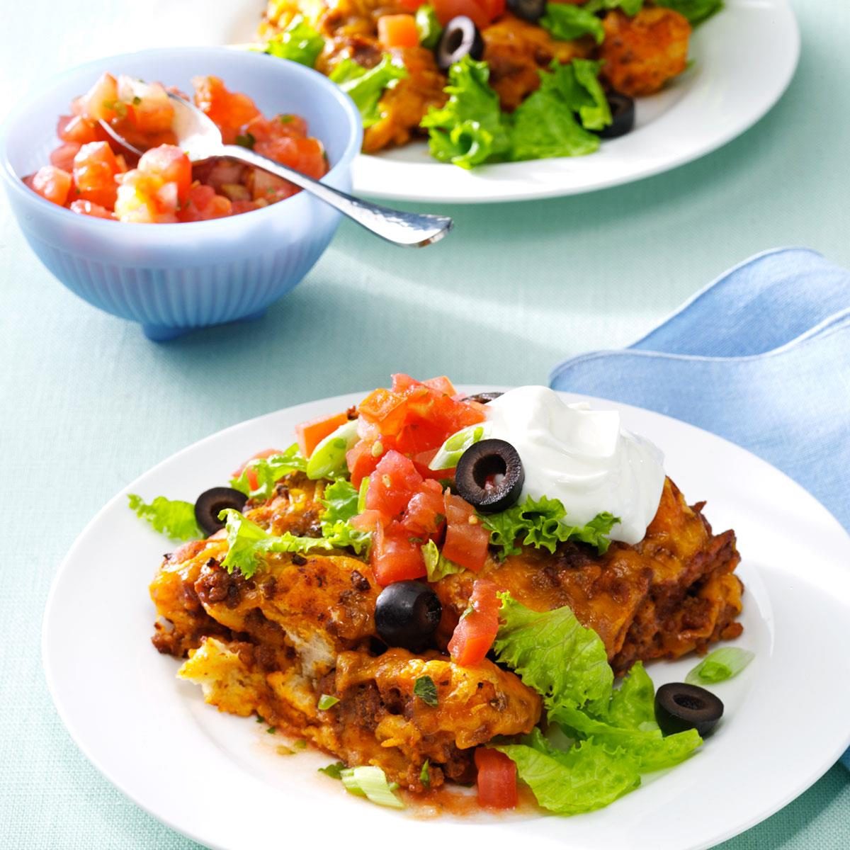My whole family enjoys this dish that tastes like a taco and looks like a deep-dish pizza. The thick tasty...