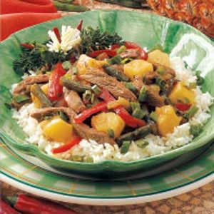 A zippy marinade sparks the flavor of this change-of-pace steak specialty. Chock-full of veggies, seasonings and pineapple chunks, this stir-fry...