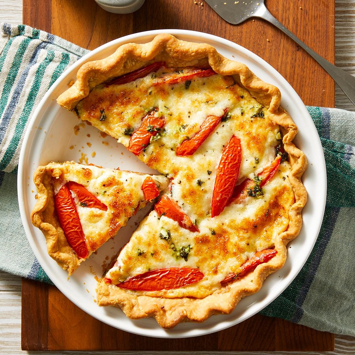 Slice yourself an easy, cheesy taste of summer with this tomato basil tart.