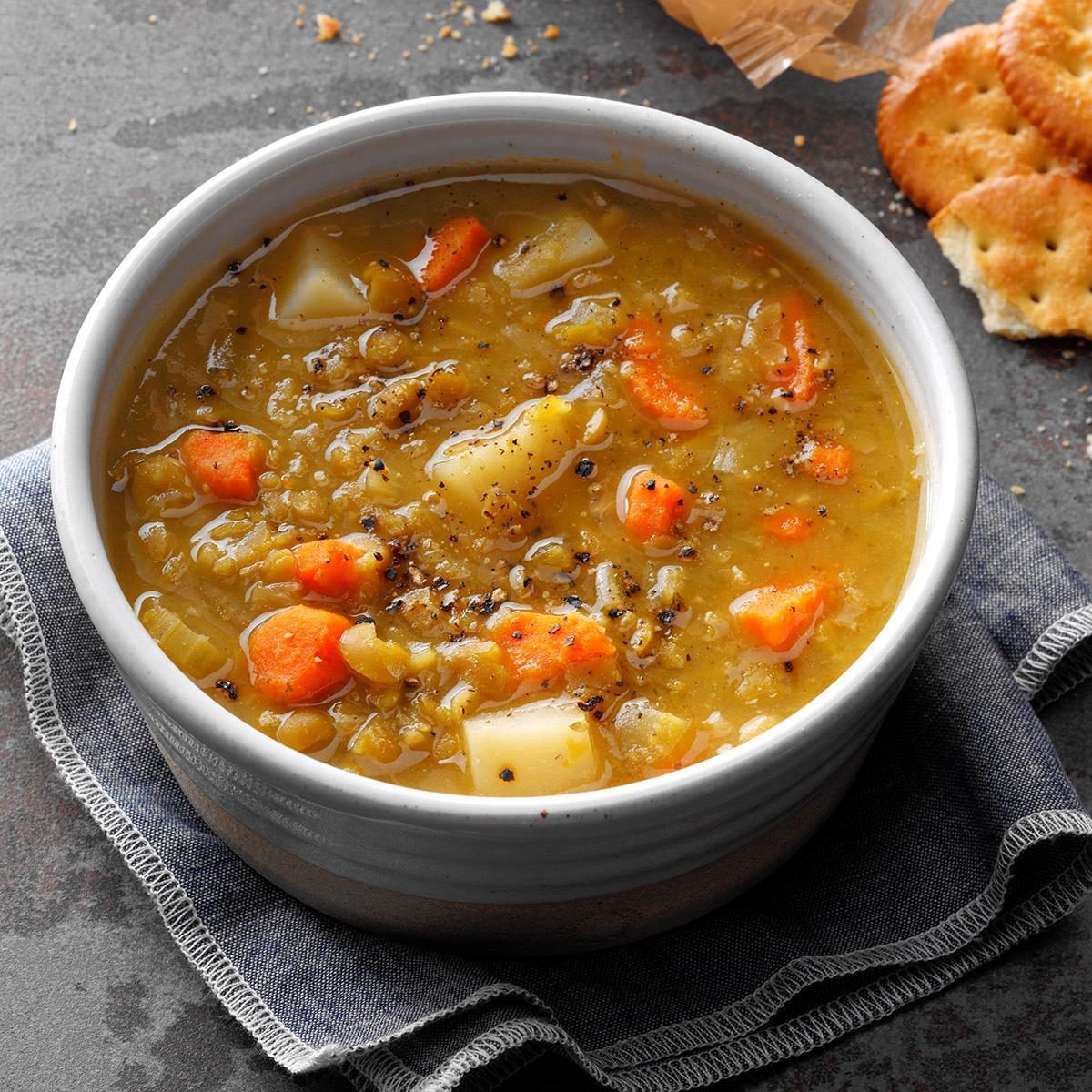 I combined several recipes to make my own version of this soup. It was a real favorite when I was a vegetarian for health reasons. Even my meat-loving husband asked for seconds! —Corrie Gamache, Palmyra, Virginia