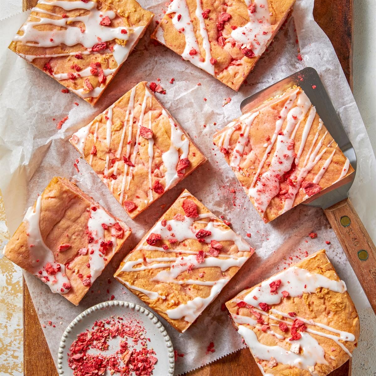 The secret to these scrumptious strawberry brownies? A boxed cake mix makes these pink brownies light and fluffy and very...