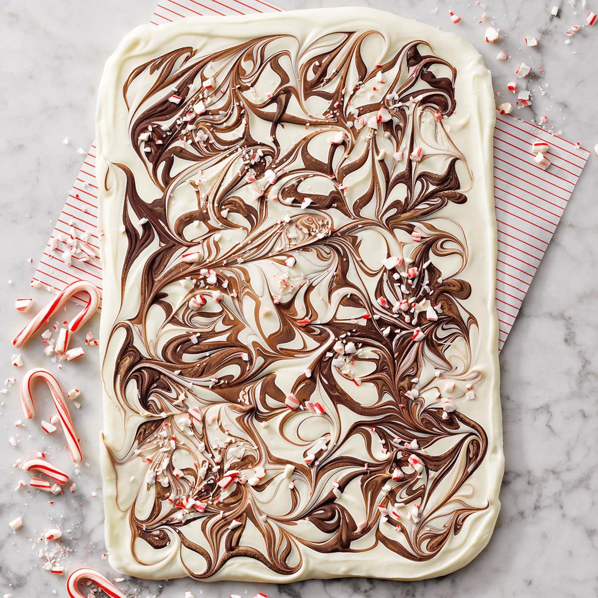 Classic dark chocolate peppermint bark gets a new look by swirling dark and white chocolate together. You can also layer...